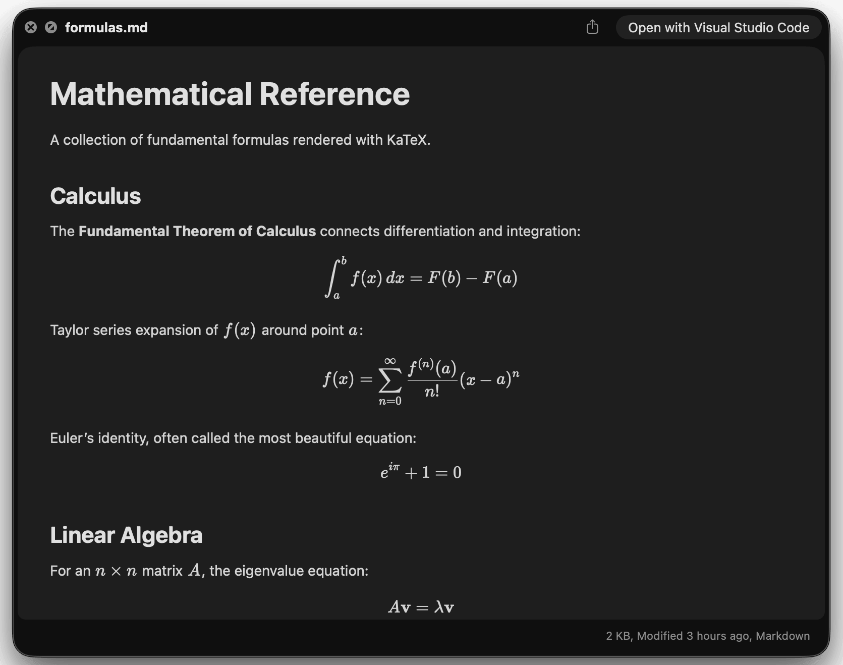 A better look at your files. Preview Markdown with KaTeX and Mermaid, highlight 190+ languages, view CSV and SQLite tables, browse archives and folders. All from Quick Look.